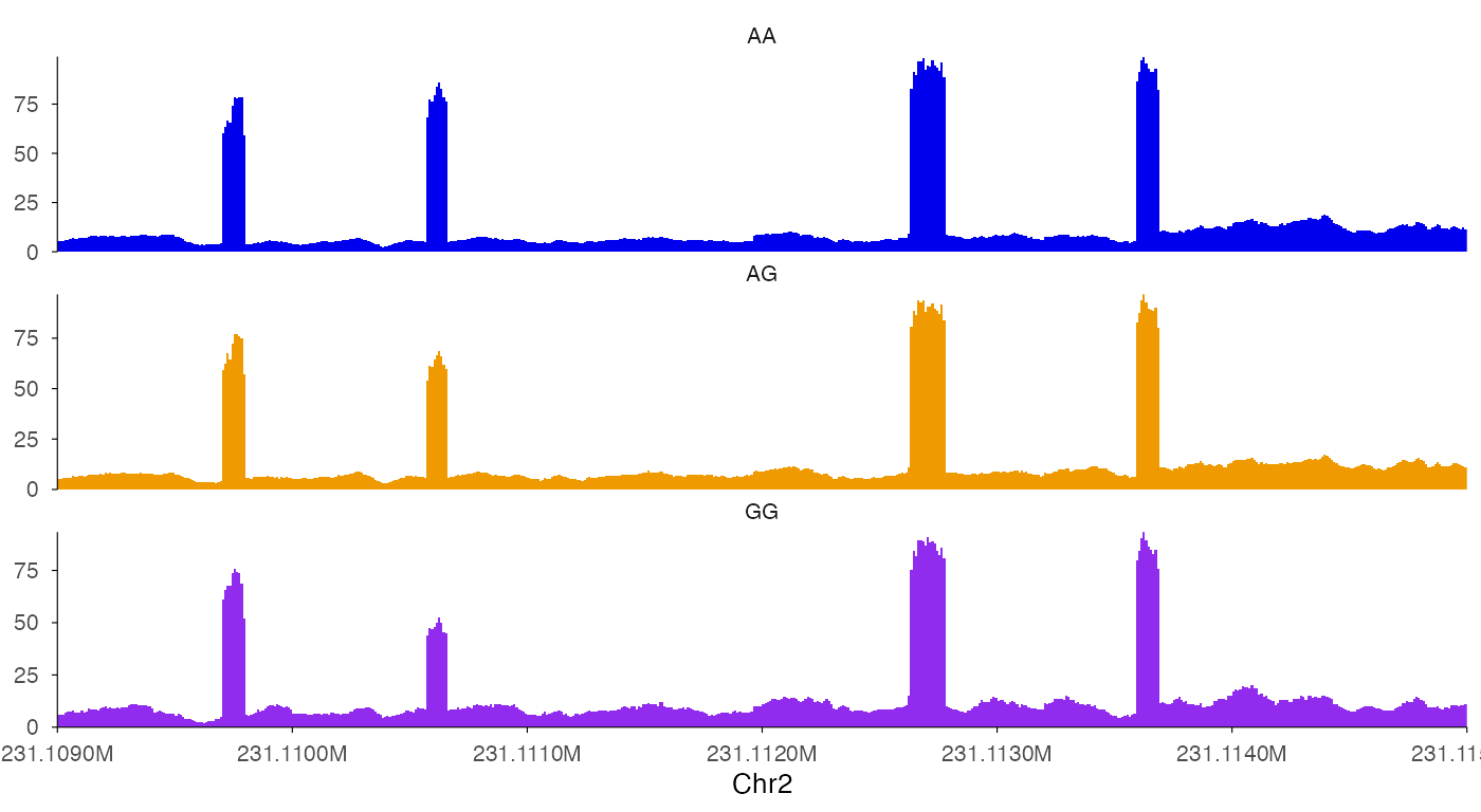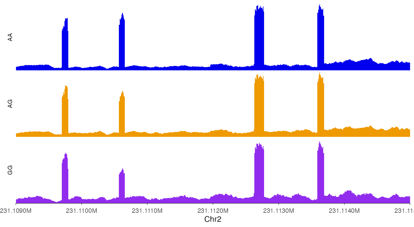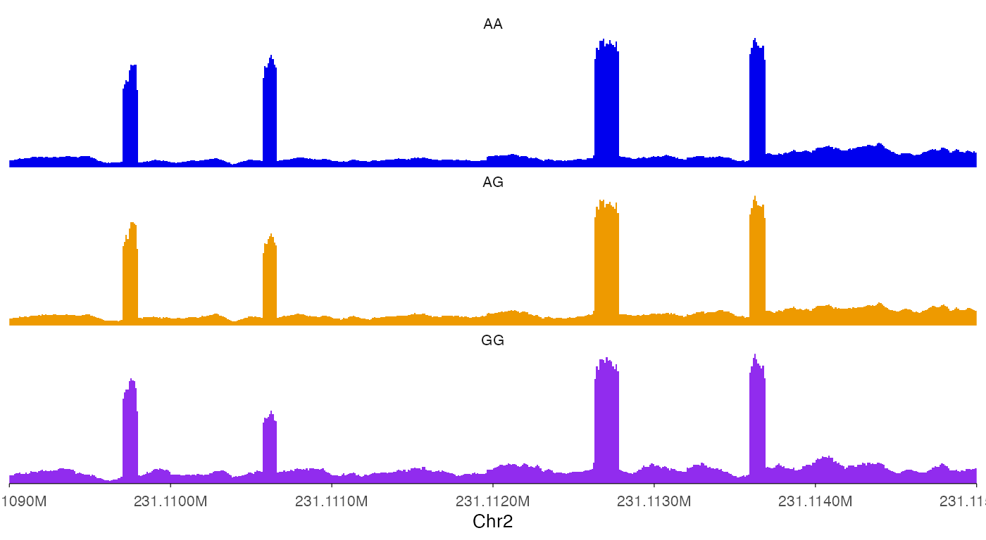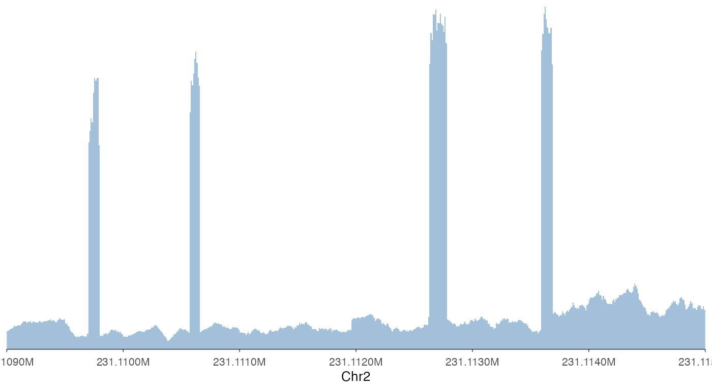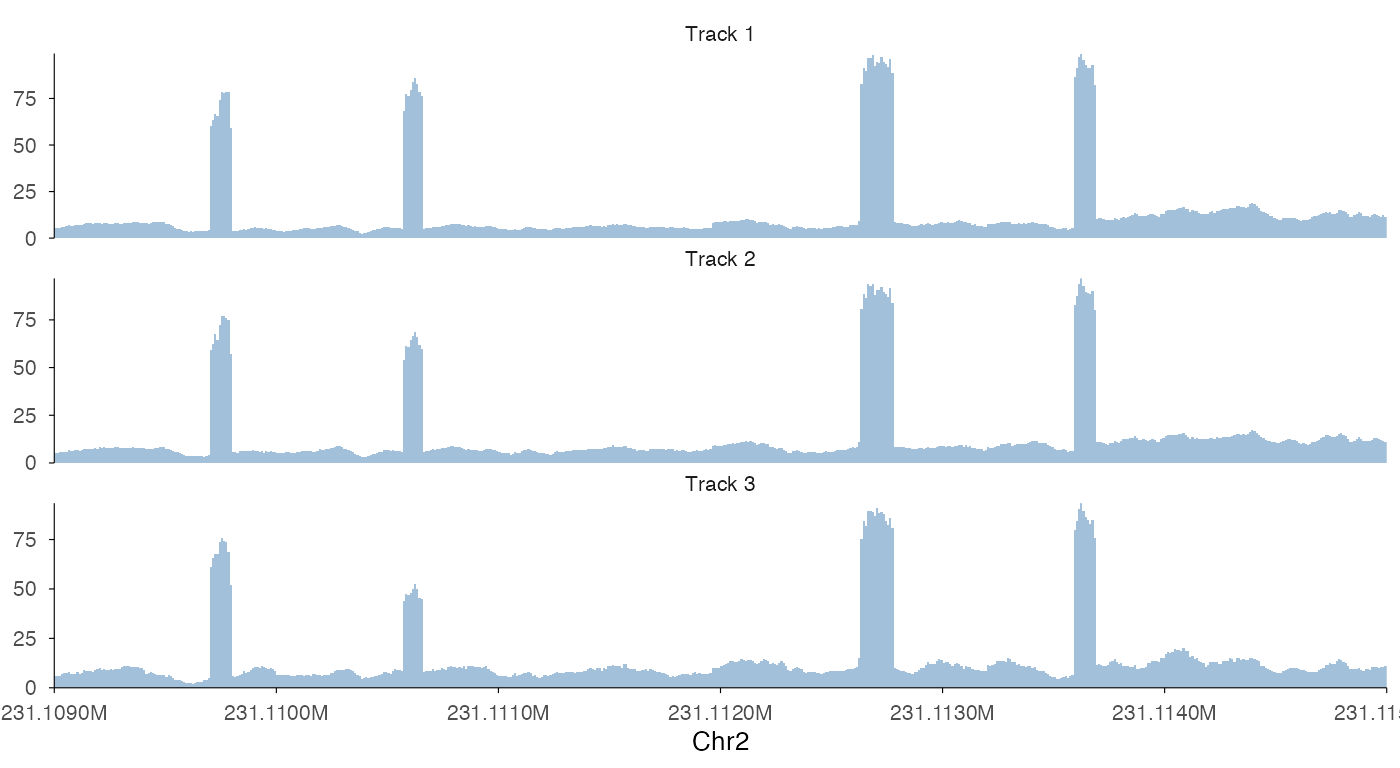 library(ggplot2)The most common use of genome browser tracks is to plot coverage of