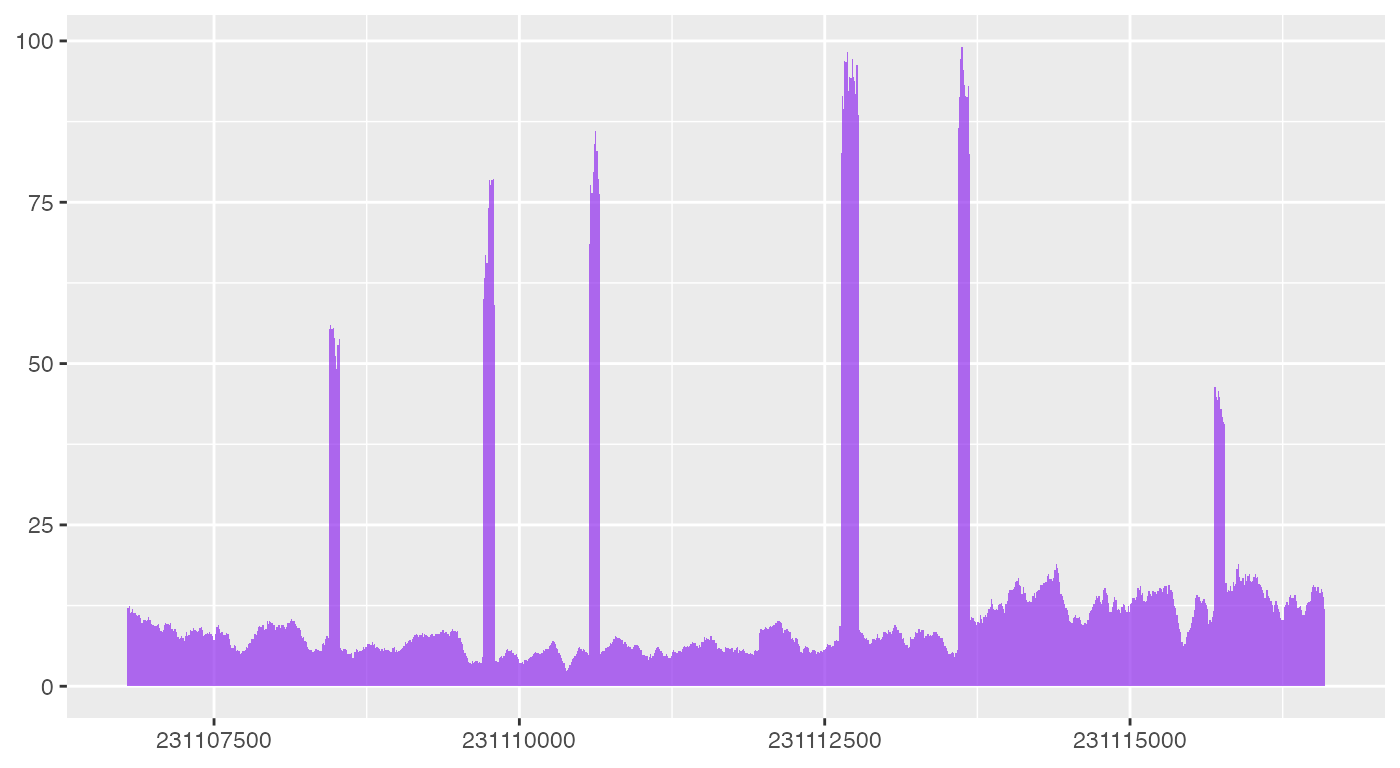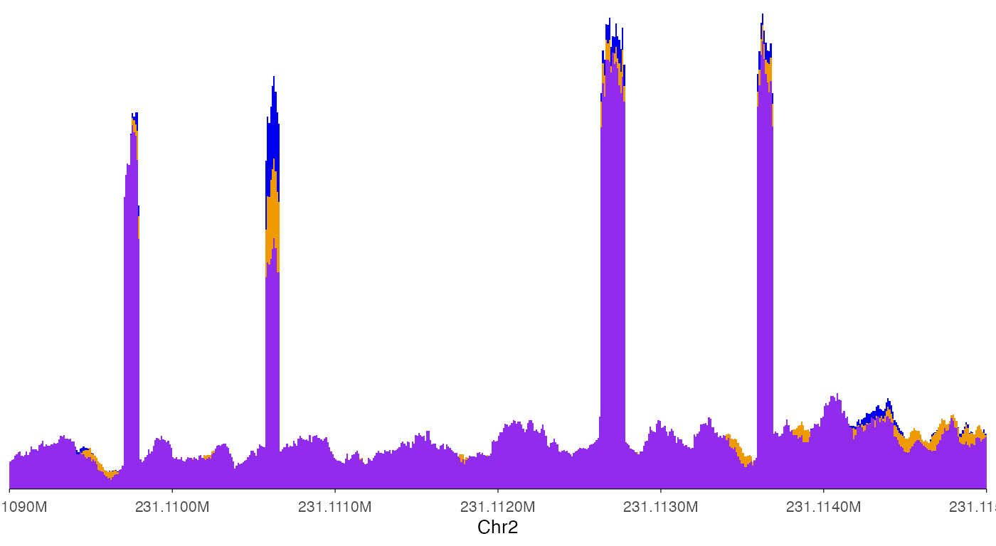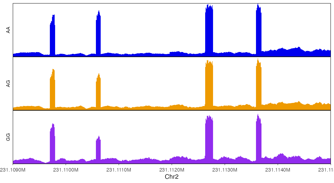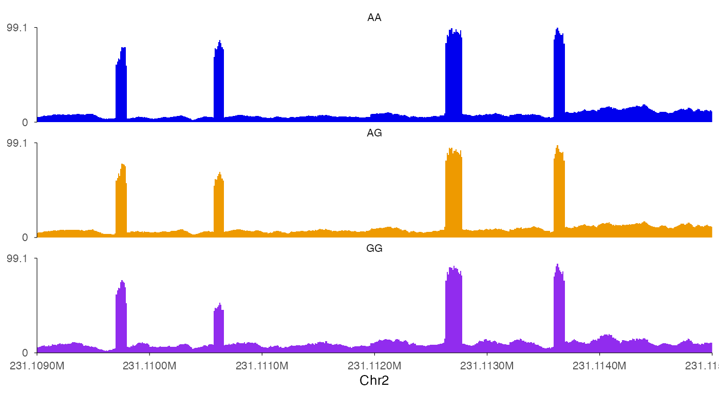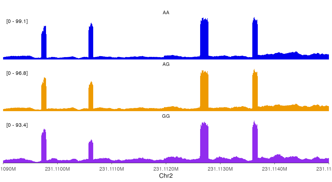 library(ggplot2)The most common use of genome browser tracks is to plot coverage of