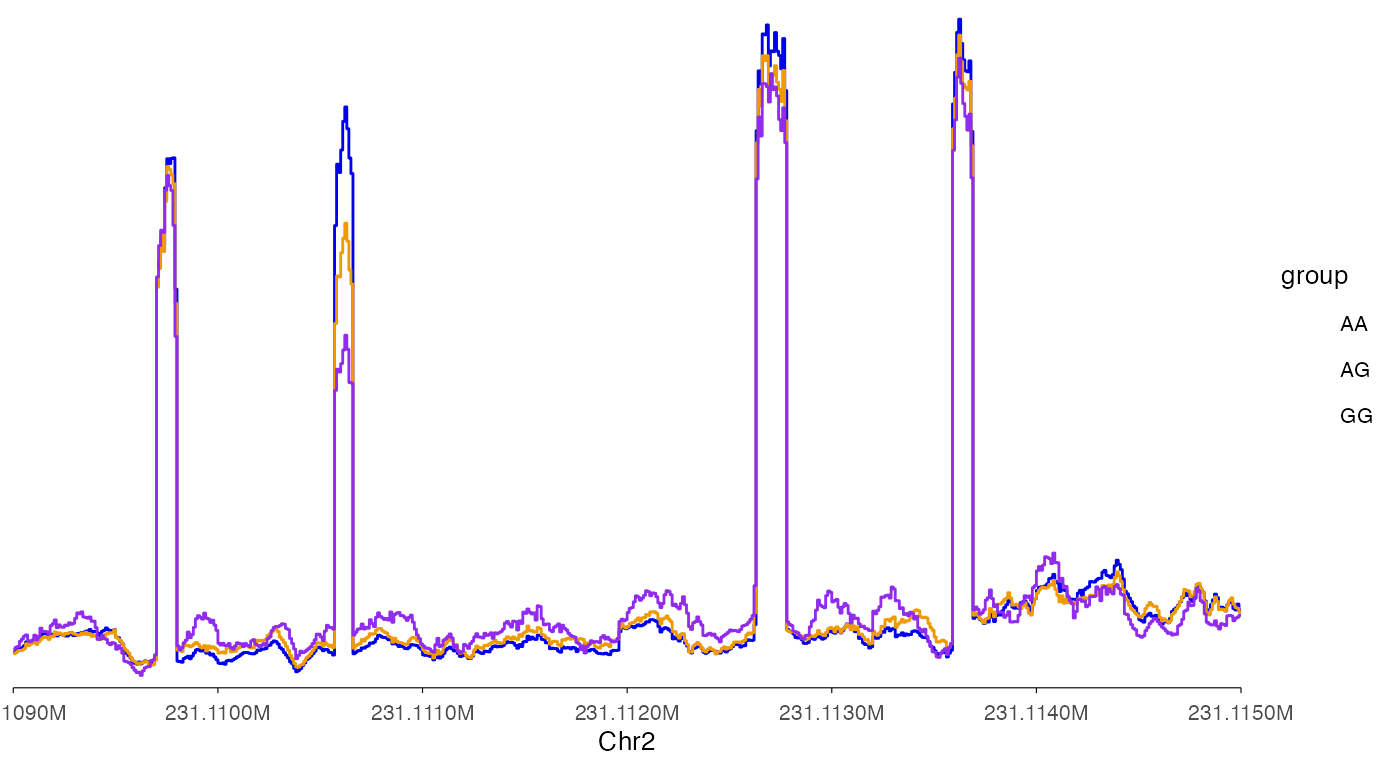 In this way, it is clear that the second exon in this plot showed differential usage across the three genotypes.